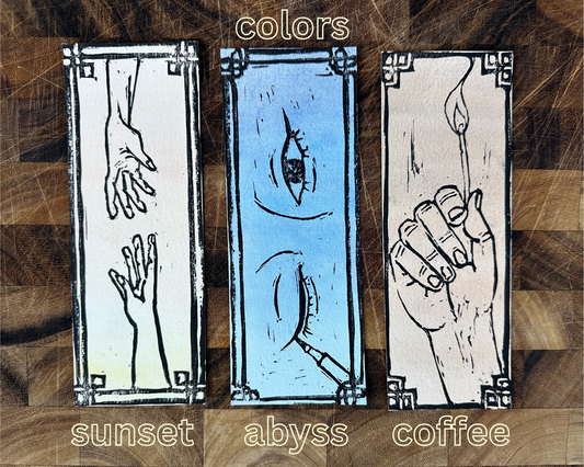 Liberation linocut bookmark series